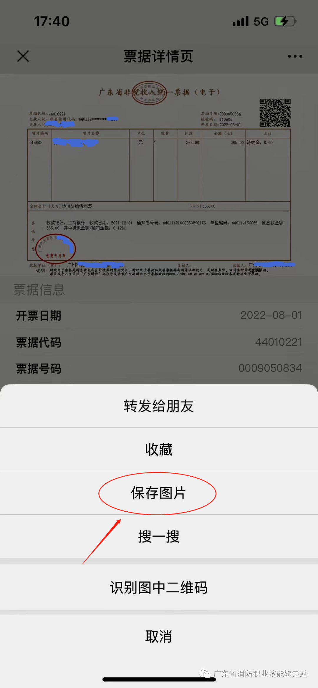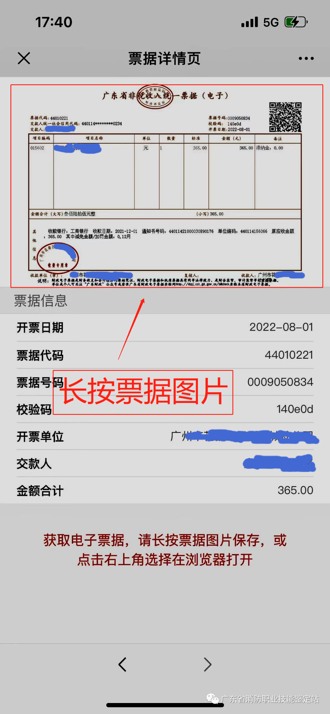5、 获取电子票据,请长按票据图片保存,或点击 右上角“•••”选择在浏览器打开